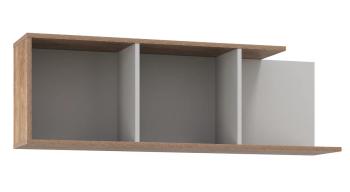 Полка навесная 58.13 из модульной системы «Гавана» имеет 3 открытые секции для книг, цветов или мелочей.