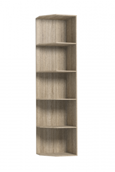 Прекрасным завершением шкафной группы выступит открытая угловая полка, которая прекрасно подойдет для хранения книг, цветов или красивой посуды в спальне или гостиной. Полки способны выдержать нагрузку до 12 кг. Для надежности конструкция крепится на стену за подвесы, а возможность сборки на правую и левую стороны делает ее универсальной.