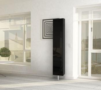 Зум Шелф Стекло – это большой поворотный шкаф с не прозрачным стеклом Lacobel черного или белого цвета с трех сторон.
