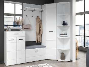 Прихожая «Империал Йорк» угловая – это стильное и функциональное решение для вашего дома. Купить прихожую Империал Йорк в Москве можно быстро и удобно. Эта модель выполнена в современном дизайне, сочетая элегантность и практичность. Гладкие белые фасады High Gloss из МДФ и зеркала наполняют пространство светом, визуально увеличивая его.