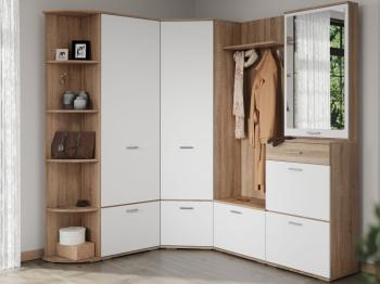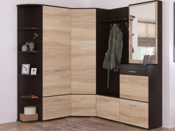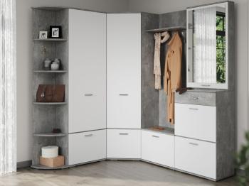 В комплект входят вместительный шкаф, тумба с зеркалом, тумба с вешалкой, угловой шкаф и стеллаж. Такой набор позволяет максимально эффективно организовать пространство. Актуальные цветовые решения визуально расширяют площадь, наполняя прихожую светом и легкостью.