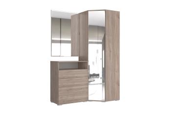 Прихожая Лайк К4 от российского производителя Мебельсон – это гармоничное сочетание современного дизайна и практичности. В комплект входят угловой шкаф, комод и зеркало, что позволяет создать полноценную систему хранения в прихожей.
