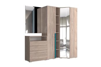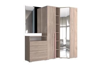 Гарнитур выполнен из качественного ЛДСП и имеет габаритные размеры 696×696×2100 мм. Благодаря продуманной конструкции прихожая включает: