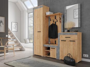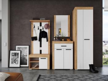 Если интерьер Вашей прихожей выполнен в современном или скандинавском стиле, мебель Галант будет как нельзя кстати! Коллекция выполнена в трендовом декоре и представлена разнообразными функциональными модулями. Например, комплект 1 состоит из тумбы, навесной открытой вешалки, обувницы с зеркалом, а также шкафа для хранения верхней одежды на плечиках.