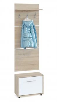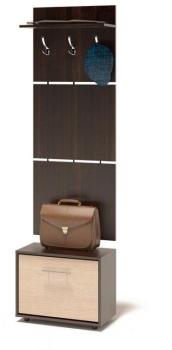 Навесная вешалка, выполненная в современном стиле. Позволит разместить сезонную одежду всей семьи. Вешалка состоит из 3-х панелей соединенных металлическими вставками. Полка, закрепленная над крючками для одежды, предназначена специально для головных уборов и зонтов. Максимальная нагрузка на полку составляет 5кг.
