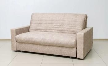 Классический раскладной диван Тадеуш-1 с механизмом трансформации аккордеон и роликовыми опорами. Благодаря твердым подлокотникам, вы можете положить книгу или телефон рядом с собой.