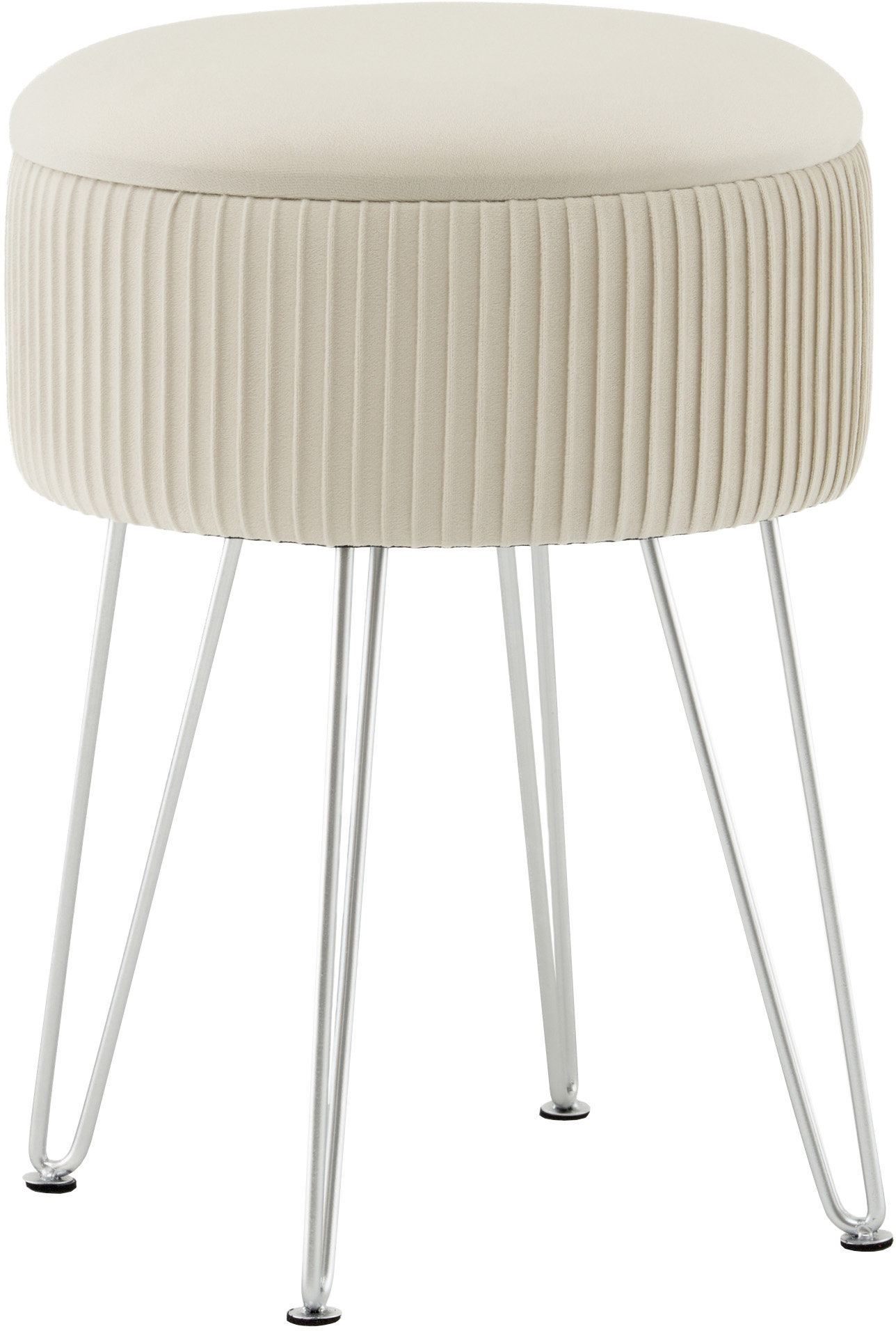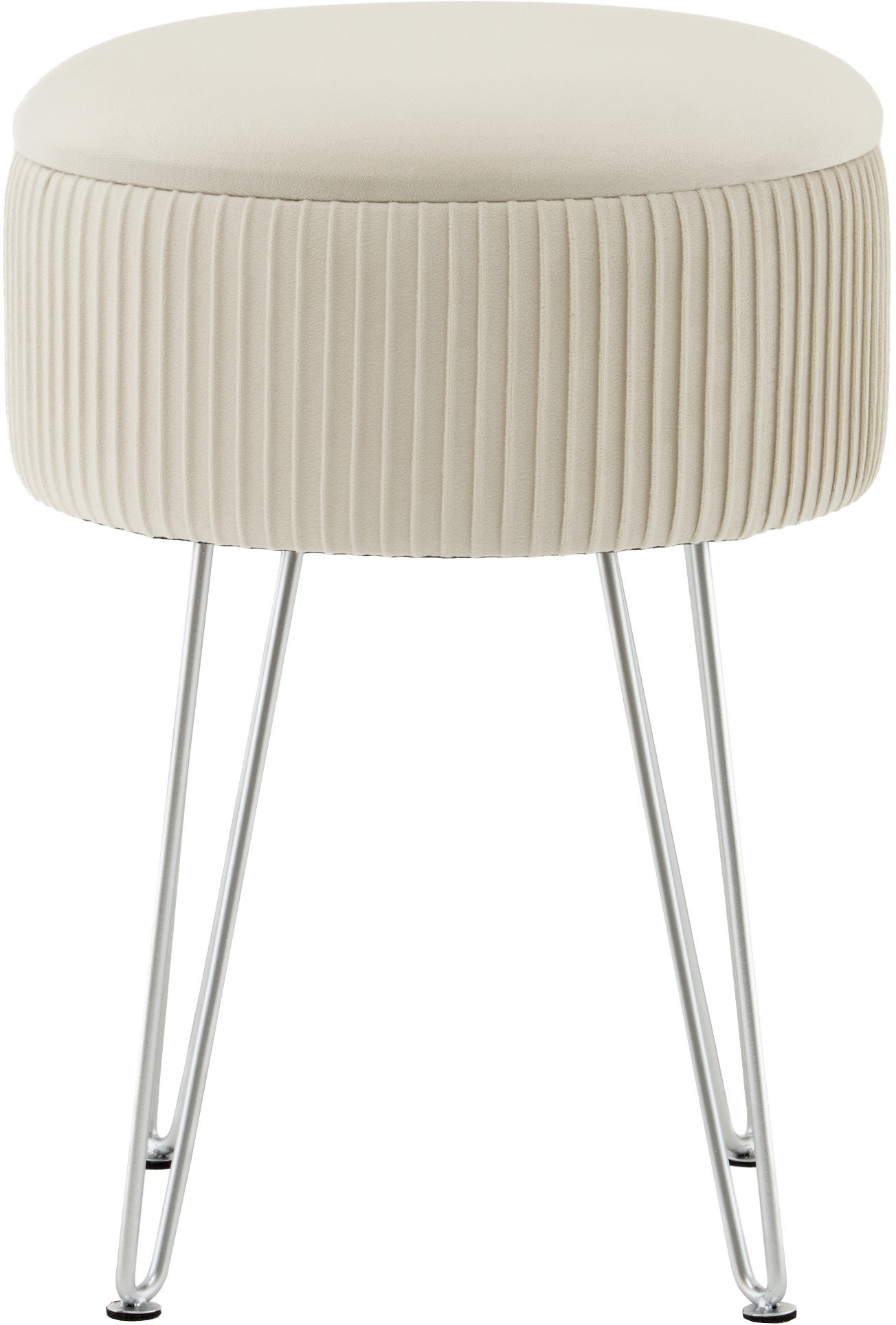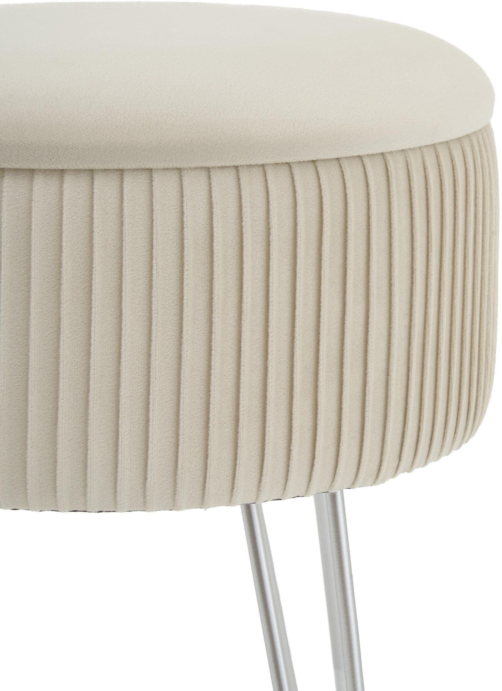 Пуфик станет отличным дополнением для спальни, прихожей или зала. Для туалетного столика пуф может служить дополнительным местом для хранения аксессуаров или просто удобным сиденьем.Металлические ножки выдерживают нагрузку до 150 кг. Подпятники в основании ножек делают пуф более устойчивым и предотвращают скольжение.