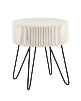 Каркас пуфа выполнен из фанеры, что обеспечивает прочность и долговечность конструкции. Обивка из рельефного велюра придаёт изделию мягкость и уют, а бежевый цвет добавляет элегантности и универсальности в интерьер. Чёрные ножки подчёркивают стильный внешний вид пуфа.