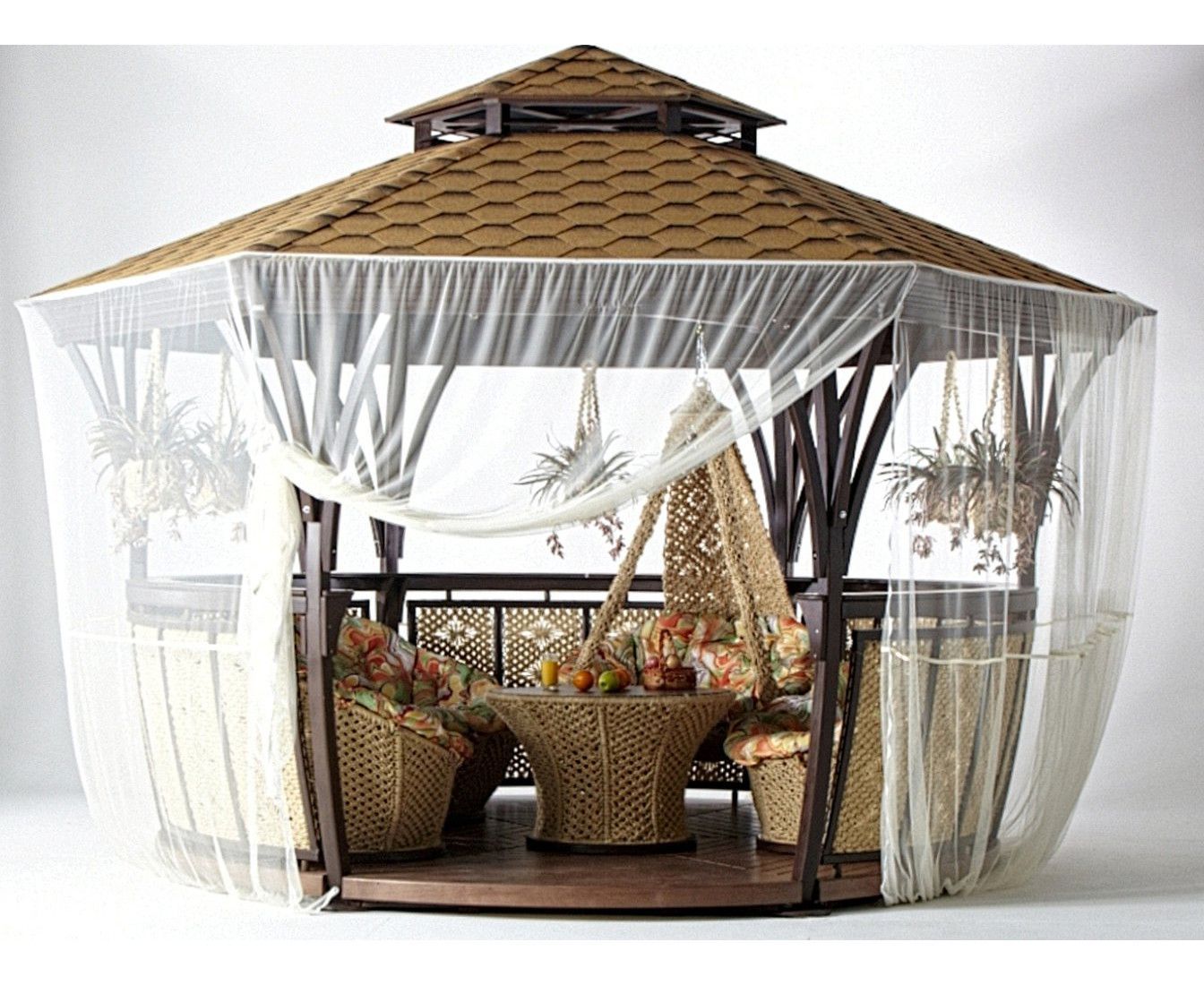 Единственный недостаток такого чудесного сооружения – надоедливые комары, осы, пчелы и разные другие насекомые. А еще – тополиный пух, который не просто надоедает, а вызывает у чувствительных людей аллергию. Поэтому москитная сетка для беседки – выход из ситуации.