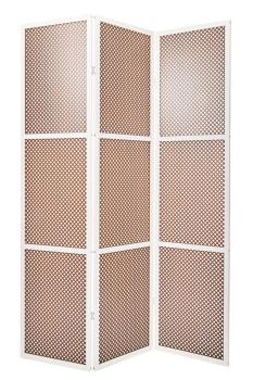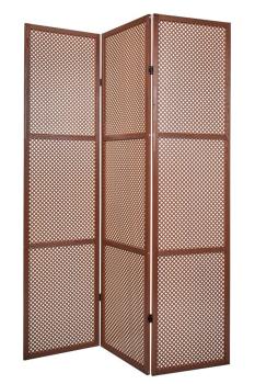 Ширма Gloria-3 сочетает в себе натуральные материалы и современный дизайн. Сквозная перфорация МДФ-вставок создает интересную игру света и тени, а натуральное дерево придает теплоту интерьеру. Каждая из трех створок разделена на равные секции, что добавляет изделию гармоничности.