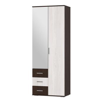 Шкаф 2-х дверный BTS Белла — это элегантное и практичное решение для хранения ваших вещей. Он оборудован тремя выдвижными ящиками и одной зеркальной дверцей, что добавляет функциональности и стиля. Внутреннее пространство шкафа включает металлическую перекладину для вешалок и полку, что позволяет удобно организовать хранение одежды и аксессуаров.