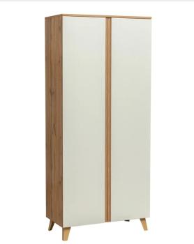 Распашной шкаф для одежды из серии Авалон с выдвижной штангой и полками. Изделие установлено на высокие ножки. Изготовлен из ЛДСП высокого качества.