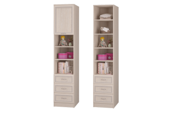 Шкаф для книг с ящиками и дверкой Верона станет гармоничным дополнением интерьера любой комнаты. Открытые ниши пригодятся для размещения любимых вещей ребенка, а полки, скрытые за дверцей, и три выдвижных ящика пригодятся для хранения интересных и увлекательных книг.