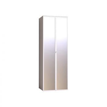 Распашной шкаф для одежды разделен на корпус и два фасада, поэтому к шкафу Вы должны заказать 2 фасада. Вы можете выбрать для своей спальни Зеркальный в рамке Контур или глухой фасад из ЛДСП – Стандарт. Brownie 54 Шкаф для одежды + ФАСАД Зеркало + Зеркало – с двумя зеркалами во весь рост. Зеркальные фасады Контур открываются за кожаную ручку-петельку, которая устанавливается на одном фасаде, другой – открывается за рамку. Шкаф комплектуется стационарной штангой длиной 757 мм, на которой можно разместить до 10 плечиков с верхней одеждой, а также двумя полками. Регулируемые опоры компенсируют незначительные неровности пола.