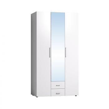 Трехстворчатый шкаф для одежды и белья с зеркалом и выдвижными ящиками — находка для спальни любых габаритов. Продуманное внутреннее наполнение шкафа делает его поистине универсальным. Шкаф оснащен отделениями для хранения белья с регулируемыми по высоте полками и отделением для одежды со стационарной штангой 768 мм. 2 выдвижных ящика комплектуются шариковыми направляющими, что обеспечивает минимальный люфт ящика и максимальное использование его площади. Зеркало на фасаде шкафа проклеено специальной пленкой – если оно разобьется, осколки не разлетятся.