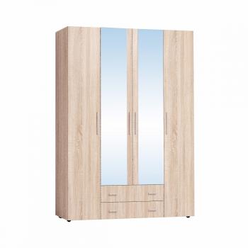 Четырехстворчатый шкаф для одежды и белья с зеркалами и выдвижными ящиками – настоящая находка для большой семьи. Продуманное внутреннее наполнение шкафа делает его поистине универсальным. Шкаф оснащен отделениями для хранения белья с регулируемыми по высоте полками и отделениями для одежды с двумя стационарными штангами 777 мм и 368 мм. 2 выдвижных ящика комплектуются шариковыми направляющими, что обеспечивает минимальный люфт ящика и максимальное использование его площади. Зеркала на фасаде шкафа проклеены специальной пленкой – если оно разобьется, осколки не разлетятся.