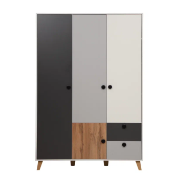 Оригинальный распашной шкаф для одежды 69.01 “Артис” с 4-мя дверцами и 2-мя выдвижными ящиками. Внутри шкаф оборудован 2-мя штангами и полками. Изделие установлено на высокие пластиковые опоры. Направляющие ящиков: Шариковые, полного выдвижения.