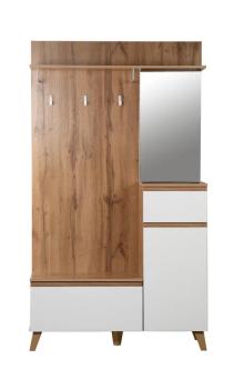 Шкаф для прихожей 53.11 «Авалон» – компактный модуль в прихожую с открытой вешалкой и зеркалом, обувницей и тумбой с выдвижным ящиком .