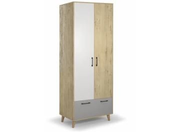 2-х дверный вместительный шкаф Бенедикт М1 с выдвижным ящиком. Шкаф оборудован полкой для хранения и штангой для вешалок. Петли с доводчиком. В комплект заложены межсекционные стяжки, для соединения модулей между собой. Опоры деревянные регулируемые. Шкаф имеет крепление к стене. Ящик не полного выдвижения.