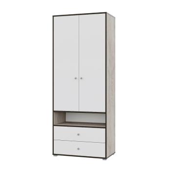 Чтобы организовать продуманное хранение вещей в сложенном виде, белья и игрушек в детской, присмотритесь к двухстворчатому шкафу из коллекции Акита. За верхними створками расположены две широкие полки, выкатные ящики оснащены шариковыми направляющими, что гарантирует полное, плавное и бесшумное закрывание.