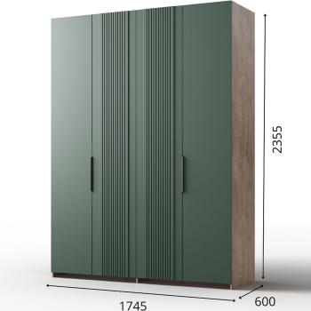 Шкаф для одежды «Герта 4д КМК 0979.1» — это стильное и практичное решение для вашего интерьера. Изготовленный из ЛДСП в цвете дуб канзас, он станет отличным дополнением любого помещения. Фасад выполнен из МДФ в зеленом матовом оттенке, что придаёт шкафу современный вид.