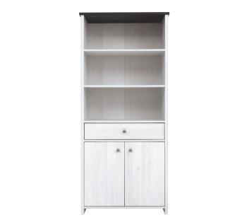 Две открытые полки вместят в себя книги, цветы, игрушки и декоративные элементы. Выдвижной ящик и полка, скрытая за дверцами, создают дополнительное пространство для хранения вещей.