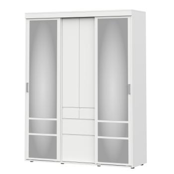 Чтобы организовать продуманное хранение одежды в спальне или прихожей и не загромождать пространство, присмотритесь к шкафу-купе Одри. Выигрышное цветовое решение и зеркальные двери визуально освежат и расширят окружающую обстановку. 2 хромированные штанги, 2 выдвижных ящика и комплект полок пригодятся для того, чтобы разместить деликатную одежду на плечиках, вещи в сложенном виде, белье и аксессуары.