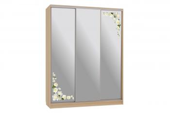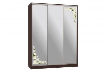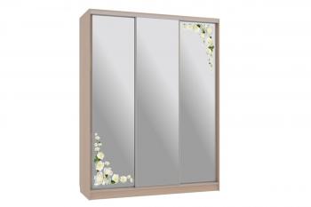 Двери шкафа сочетают в себе зеркальные поверхности и зеркала с принтерным рисунком, создавая интересный визуальный эффект. Все зеркальные элементы защищены специальной противоосколочной пленкой, что делает использование шкафа безопасным.