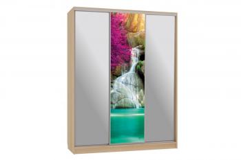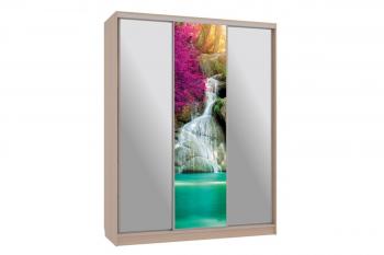 - Элегантные фасады – сочетание зеркала и стекла с принтерным рисунком, защищенных противоосколочной пленкой, придает шкафу стильный и современный вид.