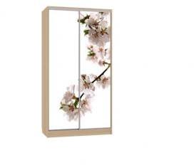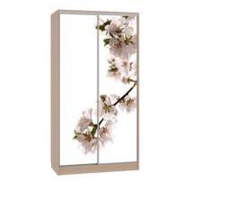 - Элегантный дизайн – фасад украшен принтом цветущей яблони на белом фоне, что придает шкафу особый шарм