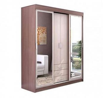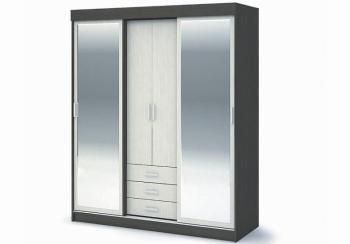 Шкаф-купе СтендМебель Андрей-2 – вместительный шкаф-купе, имеющий зеркальные вставки на дверцах и оригинальную центральную