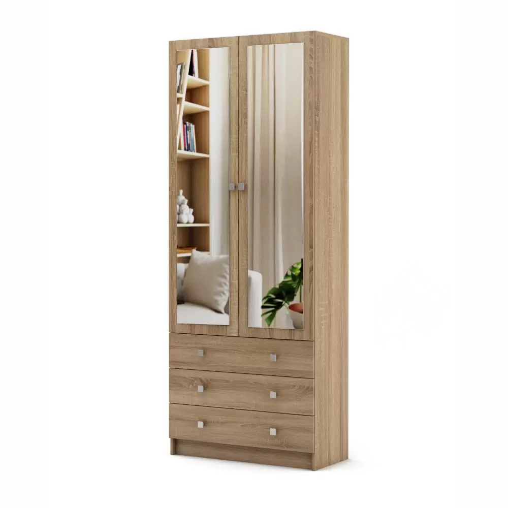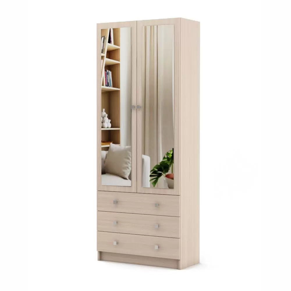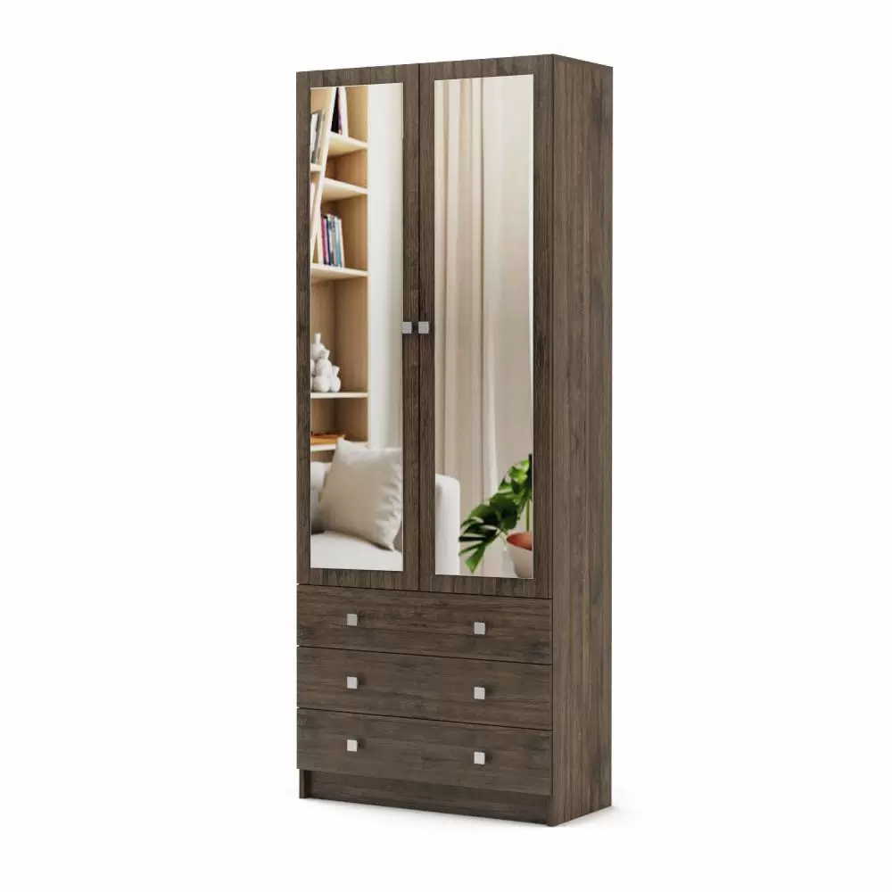Наверное, я просто сразу же влюбился в эту модель. Он очень вместительный, и сразу же привлекает внимание благодаря своему дизайну. Шкаф имеет зеркало, которое с точностью передает отражение, и глубокие выдвижные ящики. Мы долго не могли выбрать цвет, но всё же остановились на темной модели, и нисколечки не пожалели.
