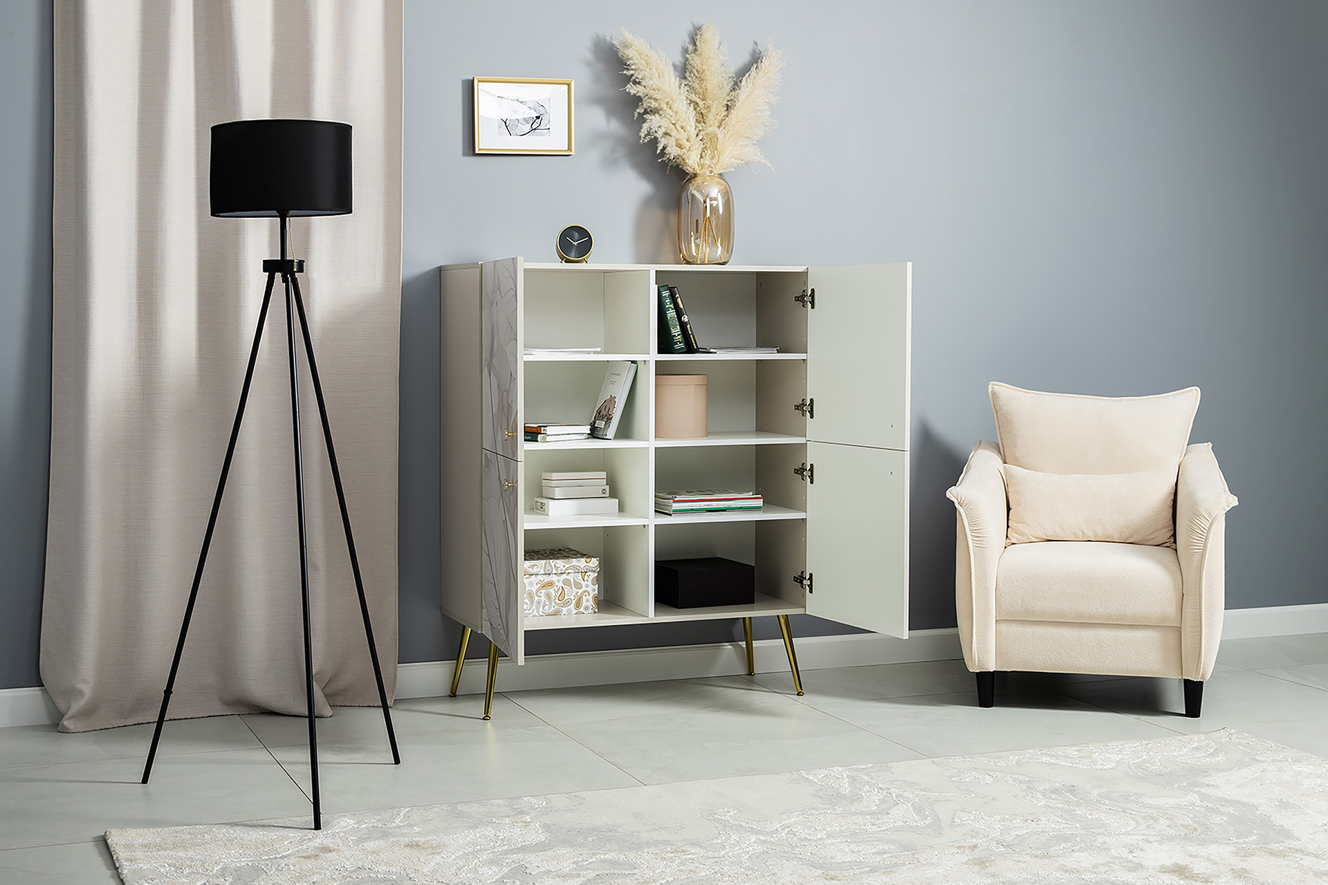 Шкаф Флоу 16.329 выделяется растительным принтом на фасаде, создающими свежий и стильный акцент в интерьере. Металлические ручки и опоры с регулировкой придают конструкции надежность и современный вид. Вместительные отделения, петли с доводчиком и скрытая задняя стенка обеспечивают удобство хранения и аккуратный внешний вид.