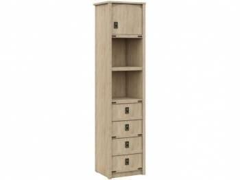 Пенал с открытыми и закрытыми полками служит для хранения учебников, тетрадей и других письменных принадлежностей. Декоративные накладки и профиль из МДФ по вертикальным краям закрывают острые края корпуса и придают шкафу более эффектный и надежной вид. Декоративные элементы на фасаде и металлические ручки MARINE бронзового цвета стилизованы под морскую тематику. Идеально компонуется со всеми модулями системы Валенсия.