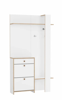 Компактная прихожая 68.10 “Дакота” с зеркалом, открытой вешалкой и тумбой под обувь. Тумба под обувь с откидными секциями и выдвижным ящиком. Направляющие ящика: Роликовые.