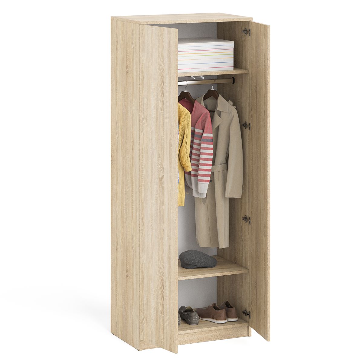 Шкаф двухдверный Мори МШ800.1. Габариты (ШхГхВ) 80,4х50,4х209,6 см. Шкаф оборудован двумя распашными дверями. За дверями расположены горизонтальная штанга для одежды на плечиках, антресольная полка для головных уборов и нижняя ниша. Открывание дверей производится за счет сиситемы «Push-to-open» на фасадах шкафов.
