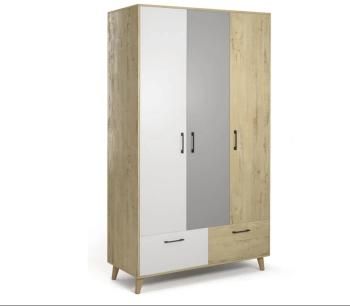 3-х дверный вместительный шкаф Бенедикт М2 с двумя выдвижными ящиками. Шкаф оборудован полками для хранения и штангой для вешалок. Петли с доводчиком. В комплект заложены межсекционные стяжки, для соединения модулей между собой. Опоры деревянные регулируемые. Шкаф имеет крепление к стене. Ящики не полного выдвижения.