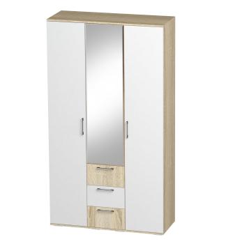 Решить задачу грамотной организации хранения в прихожей, гостиной или спальне поможет трехстворчатый шкаф из коллекции Белладжио. Модель выполнена в светлом декоре дуб сонома/белый с имитацией текстуры натурального дерева. Разноплановое наполнение шкафа позволит хранить одежду на плечиках на вместительной штанге, вещи в сложенном виде на полках, а белье и аксессуары – в выдвижных ящиках.