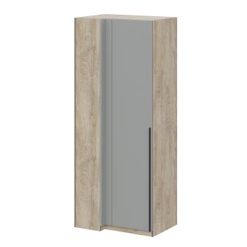 Шкаф угловой конфигурации – лучшее решение для организации хранения в малогабаритке. Шкаф Этна может быть установлен в качестве самостоятельного модуля или в составе шкафной группы. Фасад софт грей гармонично сочетается с корпусом в древесном исполнении.