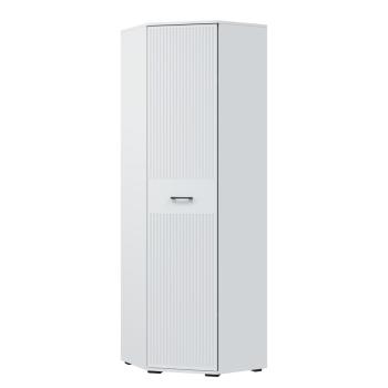 Компактный и вместительный шкаф угловой Шарлиз выполнен в трендовом оттенке “белое сияние” и вписывается в современный дизайн интерьера. Полки для белья, штанга для деликатной одежды на плечиках помогут организовать хранение вещей в одном месте.