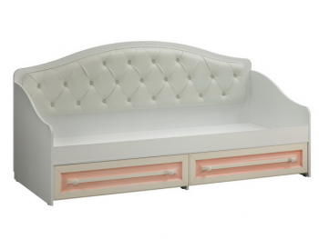 Эта модель выполнена в современном стиле с элементами французского дизайна. Белый корпус в сочетании с кремовыми фасадами и розовой патиной создает нежный и уютный образ, который особенно понравится девочкам и подросткам. Софа может использоваться как самостоятельный предмет мебели или в комплекте с другими модулями серии «Алиса».