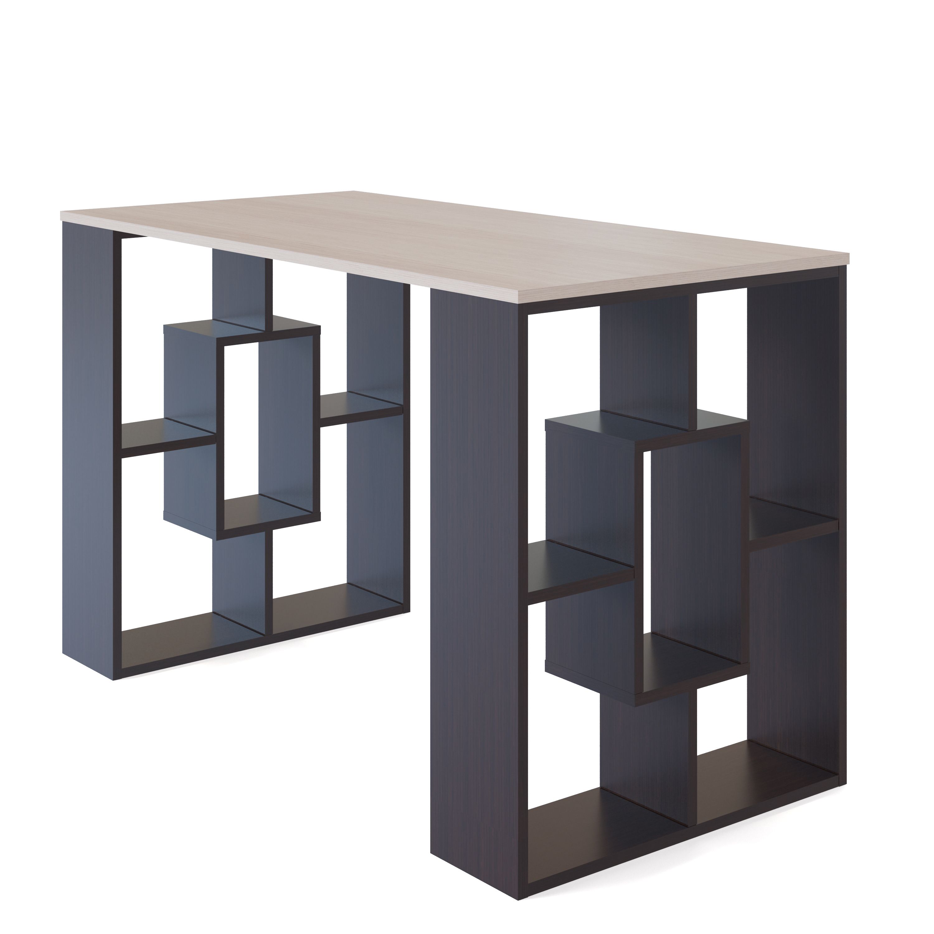 Стильный прямой письменный стол понравится всем любителям минималистичных светлых деталей в интерьере. Создавая эту модель, дизайнеры отошли от привычного оформления письменно стола и сделали его ножки функциональными — в виде стеллажей. Больше не нужно подбирать громоздкие тумбы, на столе достаточно места для ноутбука и нужных в работе материалов, а на его опорах — для книг, канцелярии и любимых предметов для настроения.