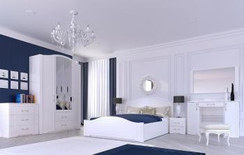 Модульная серия «Виктория» выполнена в стиле «Классика». Особенность серии – фасады МДФ с фрезеровкой, петли с доводчиком на всех фасадах, шариковые направляющие, возможность исполнения шкафов для одежды с зеркалами и без, В шкафу для одежды 4-х дверном установлена система складных фасадов, ручки металлические с белой вставкой, покрытие золото.