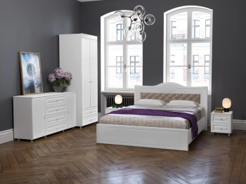 Фасады из высококачественной МДФ с объемным узором. Кровать оснащена ортопедическим основанием. Матрас для кровати докупается отдельно.