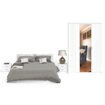 Гарнитур спальный Ручеёк № 2. Цвет – корпус белый/фасад мдф белый глянец. Гарнитур состоит из кровати 1600 с двумя прикроватными тумбочками и шкафа 1500. Спальное место 1600х2000 мм. Основание в комплекте, матрас приобретается отдельно. Романтичный и комфортный ансамбль, растворит в уютном умиротворении!