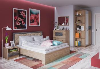 Модульная коллекция Мадлен – стильное и функциональное решение для организации пространства спальни. Мебель выполнена из ЛДСП в декоре дуб сонома и украшена вставками из МДФ цвета дуб шале серебро. Утонченные ручки являются несомненным украшением модулей. Мягкое изголовье кровати обтянуто экокожей со строчкой и декоративными пуговицами.Кровать комплектуется основанием, матрас приобретается отдельно.