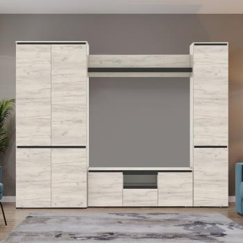 Купить стенку «Памир Гретта-3» в Москве можно, оформив заказ на нашем сайте. Эта модель не только функциональна, но и станет стильным акцентом в вашем доме. Длина стенки составляет 270 см, высота — 212 см, а глубина — 51 см, что позволяет разместить до 12 мест. Цвет каркаса — дуб крафт белый, а фасады выполнены в крафт белом и антрацитовом оттенках.