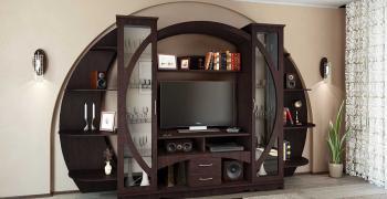 Стенка Ривьера (венге) -это мебель которую выбирают люди с отличным вкусом. Невероятно оригинальная модель стенки, которая сразу же привлекает к себе все внимание и придает яркого акцента любому помещению. Особенно интересно выглядят элементы в форме круга. В наличии много выдвижных ящиков, а также полок под определенные аксессуары для ТВ или любые другие вещи. По бокам есть две вместительных шкафа-витрины. Все продумано до мелочей и очень практично. Среди особенностей модели: европейские материалы, система выдвижения – роликовые направляющие полного выдвижения, металлические ручки.