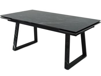 Кухонный стол «Monaco» Quadro — это стильное решение для вашего интерьера. Его столешница изготовлена из искусственного камня, а именно керамогранита Noir desir Bocciardato, что придает изделию элегантный вид. Черные металлические опоры обеспечивают прочность и устойчивость, а боковые вставки для раскладки делают его функциональным.