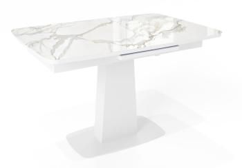 Механизм раскладки стола полный автомат. Вставка находится внутри стола шириной 40 см. Материал вставки: стекло толщиной 4 мм с фотопечатью под мрамор + МДФ 16 мм